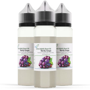 Ichor Liquid's Short Fill E Liquids, like Nerdy Grape, come in 60ml bottles, pre-filled with 50ml of nicotine-free e-liquid. You can customize your experience as follows: